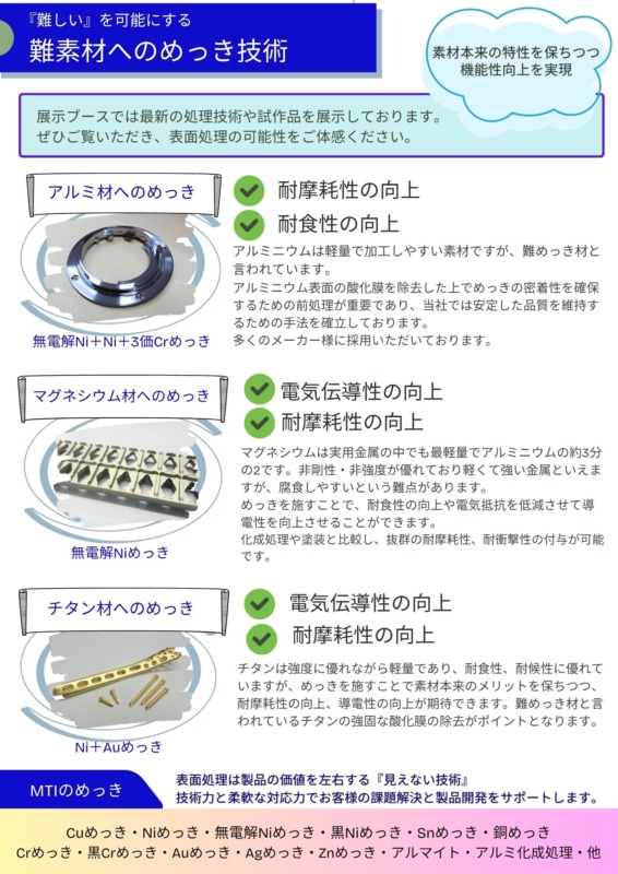 当日は、難素材へのめっき技術や試作品の紹介をさせていただき、